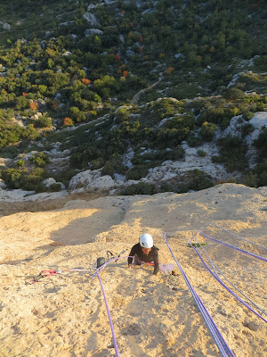 La Falconera reb l'ombra passades les quatre, tirant a les cinc, permetent-nos escalar poques hores.